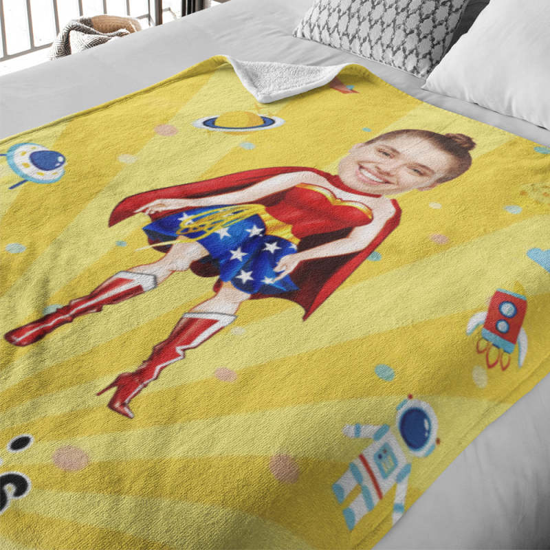 Enveloppez-vous ou enveloppez quelqu'un de spécial dans une couverture MiniMe personnalisée. Personnalisez avec vos photos préférées. Que vous le drapiez sur une chaise préférée ou que vous vous blottiez contre lui sur le canapé, vous allez tout adorer !