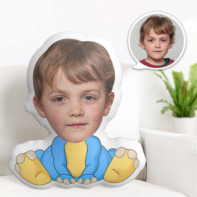 Oreiller Visage Personnalisé Oreiller Photo Personnalisé Oreiller Minime Dinosaure Bleu Et Jaune Cadeaux Pour Enfants