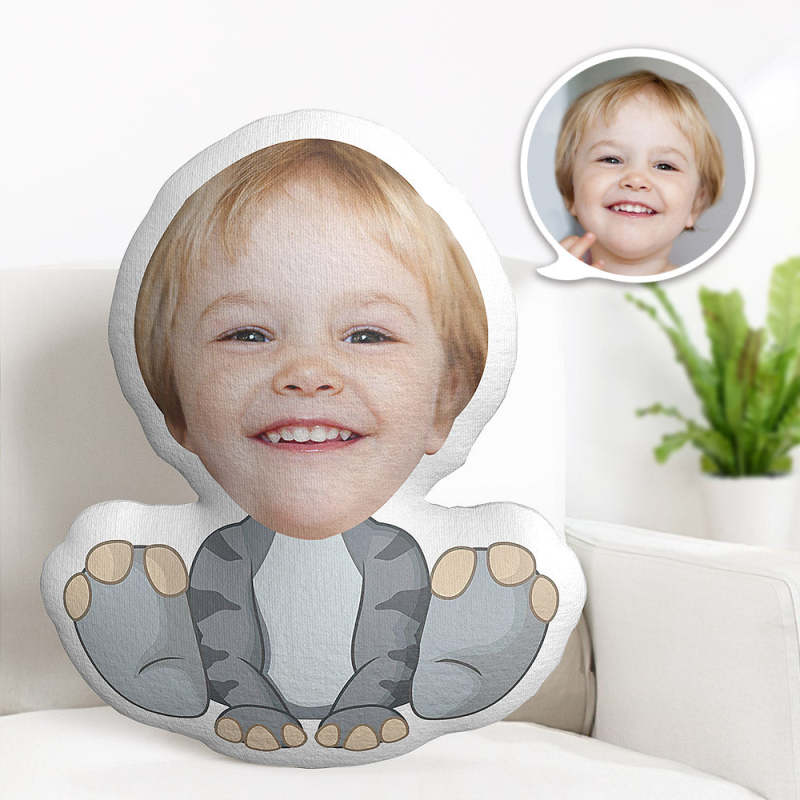 Oreiller Visage Personnalisé Oreiller Photo Personnalisé Oreiller Minime Dinosaure Gris Rayé Cadeaux Pour Enfants