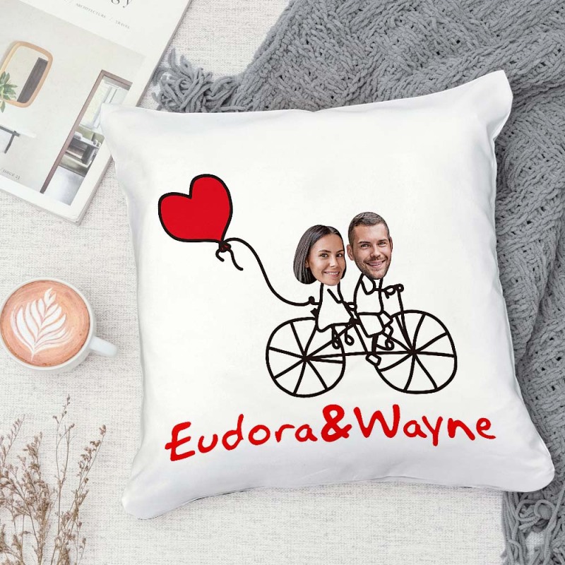 Accueil / Matchmaker Personnalisé Visage Oreiller Amour Vélo Personnalisé Couple Photo Et Texte Jeter Oreiller Saint Valentin Cadeau