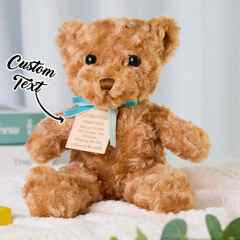Présentation de notre ours en peluche personnalisé avec statistiques de naissance, le cadeau parfait pour annoncer l'arrivée d'un nouveau bout de chou. Fabriqué dans un matériau doux et câlin, cet adorable ours peut être personnalisé avec les statistiques de naissance du nouveau-né. C'est une façon unique et réfléchie de célébrer et de chérir ce moment spécial.
