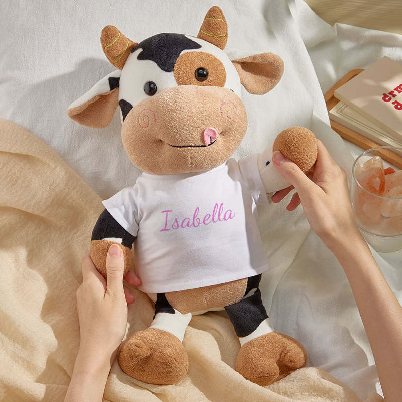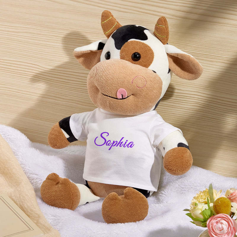 Accueil / Peluche De Vache Personnalisée Avec Cadeau Texte Personnalisé Pour Fête Prénatale